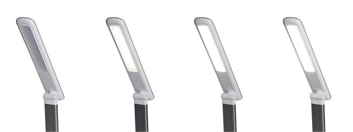Kompakt, állítható fényerejű LED-lámpa. Galvanizált alumínium karok, stabil acél oszlop nehezékként szolgáló súlybetéttel. Extra takarékos, 80%-kal kevesebb energiaszükséglet az izzókhoz képest, emellett helytakarékos és könnyen kezelhető. 5 fokozatú fényszabályozó a lámpa alján található érintési felülettel. Biztonságos és környezetbarát, újrahasznosítható csomagolás.