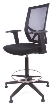 Magasított irodai munkaszék lábtartó gyűrűvel, tappanccsal, fekete szövetborítás, hálós háttámla, MAYAH "Sky"