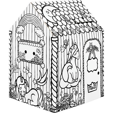 Játékház, színezhető, karton, FELLOWES, Egyszarvú házikó