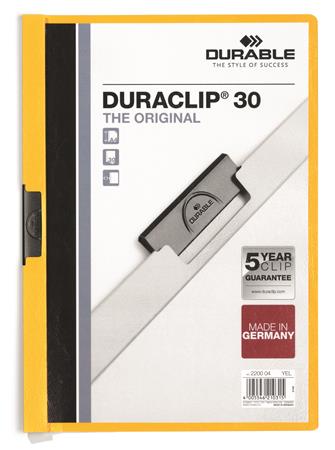 Gyorsfűző, klipes, A4, DURABLE "DURACLIP® 30", sárga