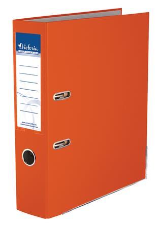 Iratrendező, 75 mm, A4, PP/karton, élvédő sínnel, VICTORIA OFFICE, "Basic", narancs