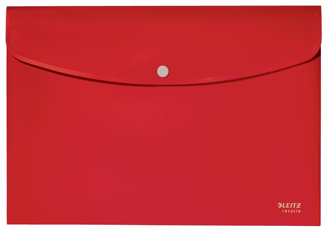 Irattartó tasak, A4, PP, patentos, LEITZ "Recycle", piros