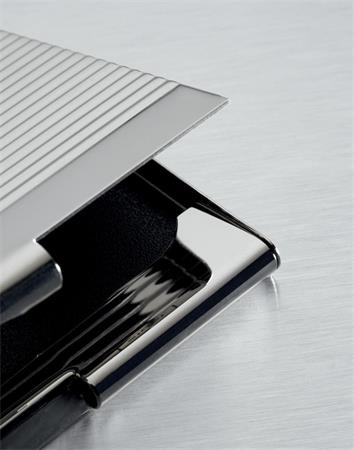 krómból készült fém tárca, ezüst színű, 20 db max. 91 x 56 mm méretű kártya tárolására