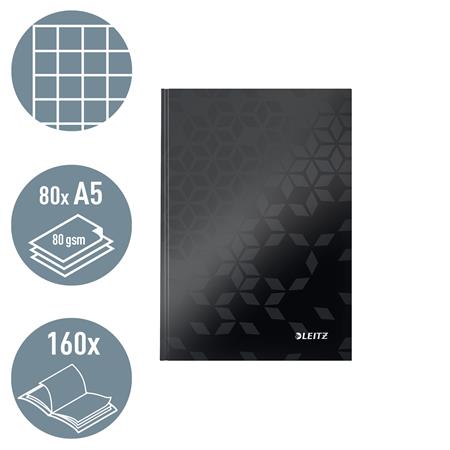 Beíró, A5, kockás, 80 lap, keményfedeles, LEITZ "Wow", fekete