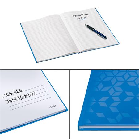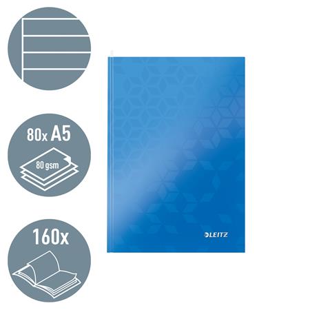 Beíró, A5, vonalas, 80 lap, keményfedeles, LEITZ "Wow", kék