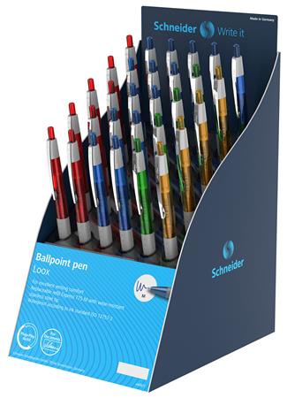 Golyóstoll display, 0,5 mm, nyomógombos, SCHNEIDER "Loox", vegyes színek