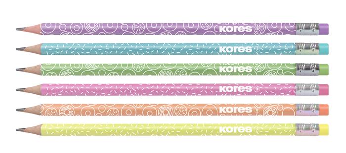 KezdőlapIrodaszerekÍrószerekGrafit- és színes ceruzákGrafitceruza készlet, radírral, HB, háromszögletű, KORES "Grafitos Style Pastel"