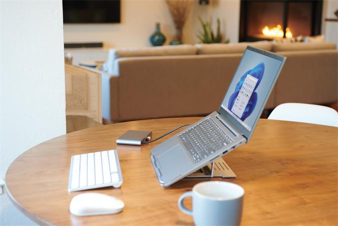 Az Easy Riser™ összecsukható laptopállvány könnyen hordozható, strapabíró valamint újrahasznosítható és fenntartható anyagból készült.