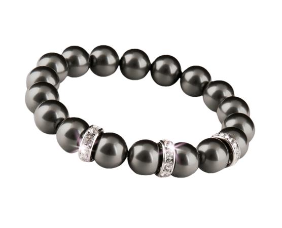 Karkötő, fekete SWAROVSKI® gyöngyből, fehér rondella kristállyal, 10mm, ART CRYSTELLA® M