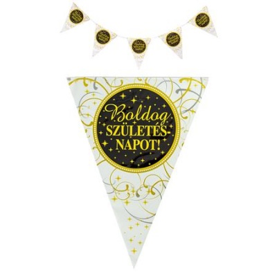 Zászló, 3,6 m, műanyag, "Boldog Szülinapot", elegáns
